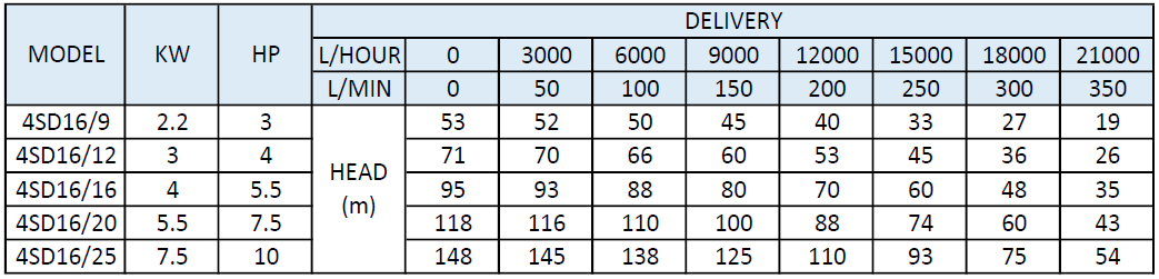 | Model | 4SD16/9, 4SD16/12, 4SD16/16, 4SD16/20, 4SD16/25 |