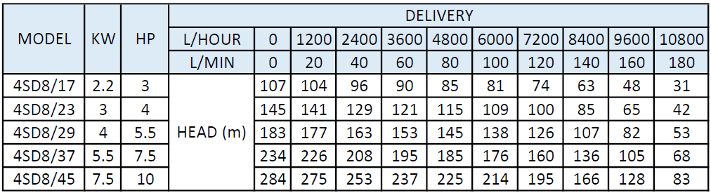| Model | 4SD8/17, 4SD8/24, 4SD8/29, 4SD8/37, 4SD8/45 |