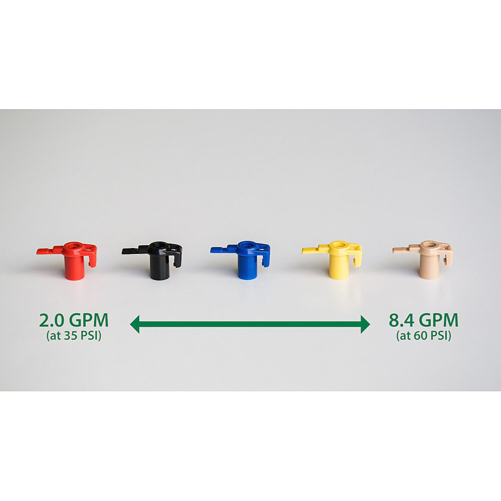 Five standard trajectory and two low angle (LA) color-coded nozzles for matched precipitation and in a wide range of applications